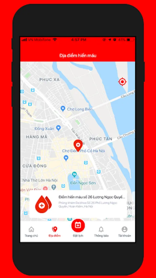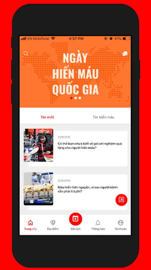 Application to look up information of blood donors, places of blood donation, chat on the application