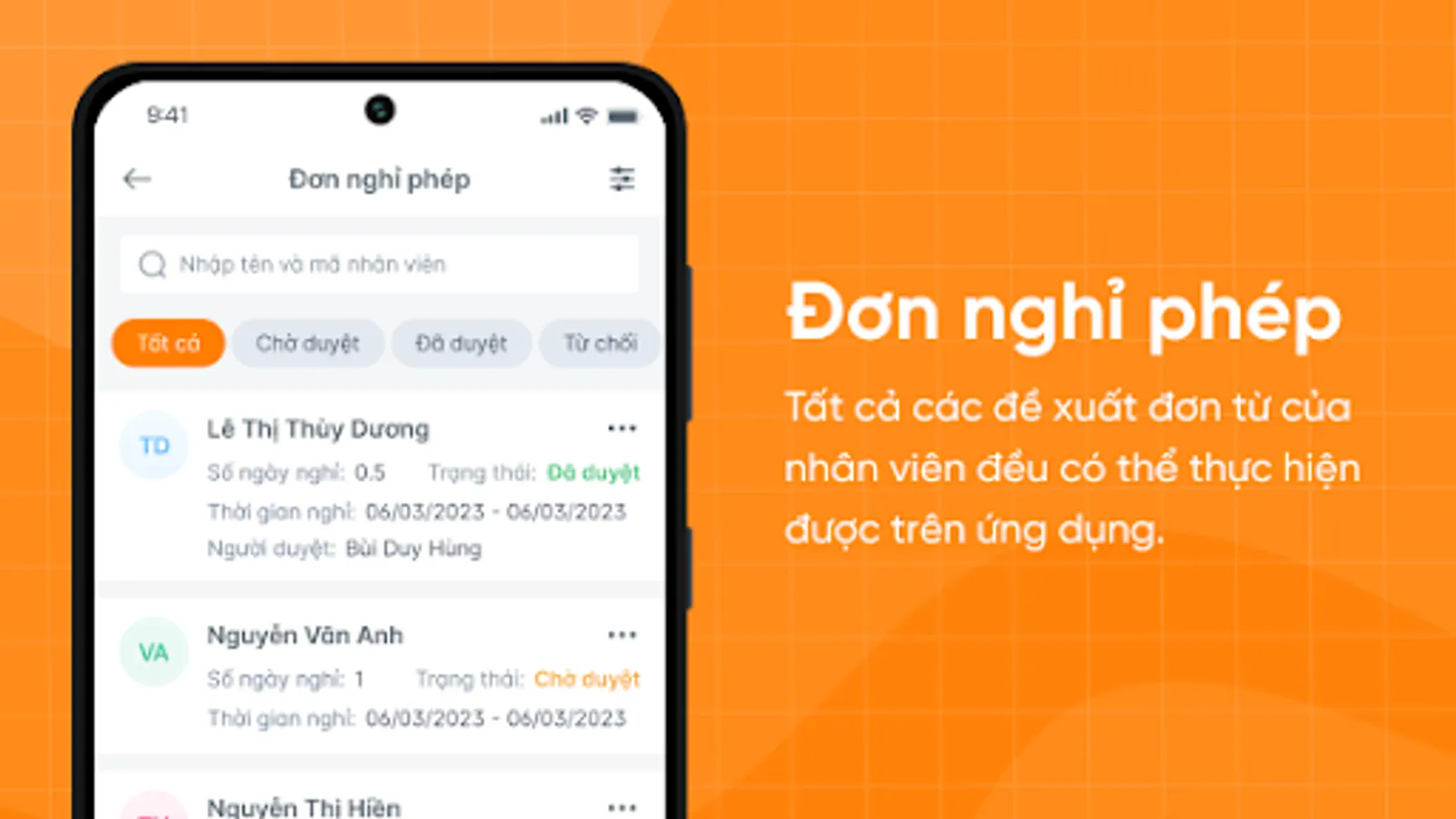 + Track detailed history of leave applications, overtime applications, work-from-home applications... of employees and process and approve related information quickly