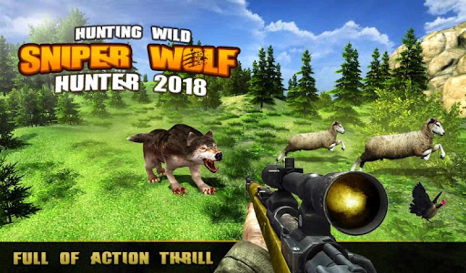 Hunting wild animals sniper 3d - wolf hunter 2018 is an amazing simulation and the development of superb quality jungle hunting game. This is very impassive wolf hunting in the jungle environment game, where you can hunt the dangerous wolf who is going to attack on the farm animal in the beautiful green environment. Hold the best sniper gun, take the perfect aim and shoot the dangerous wolf hunting rivals and save the farm animals. Get ready for the great journey of the saving farm animals in the forest environment. Get your best sniper shooting weapon and prepare for a fast and furious shooting experience across the jungle. This amazingly realistic wolf hunter 2018 simulation game is packed full of super cool forest environment dangerous wolfs and exciting, dynamic shooting missions. Finish more and more angry and hungry wolfs be the best hunter of the jungle. Kill the wild wolf for your farm animal’s survival with no fear otherwise wolves bite your animals. Enjoy the experience of shooting wolves until all wolves are down to make the place safe for farm animals to dwell and complete the mission. Play this game to become the pro hunter and scary wolf shooter of the world.