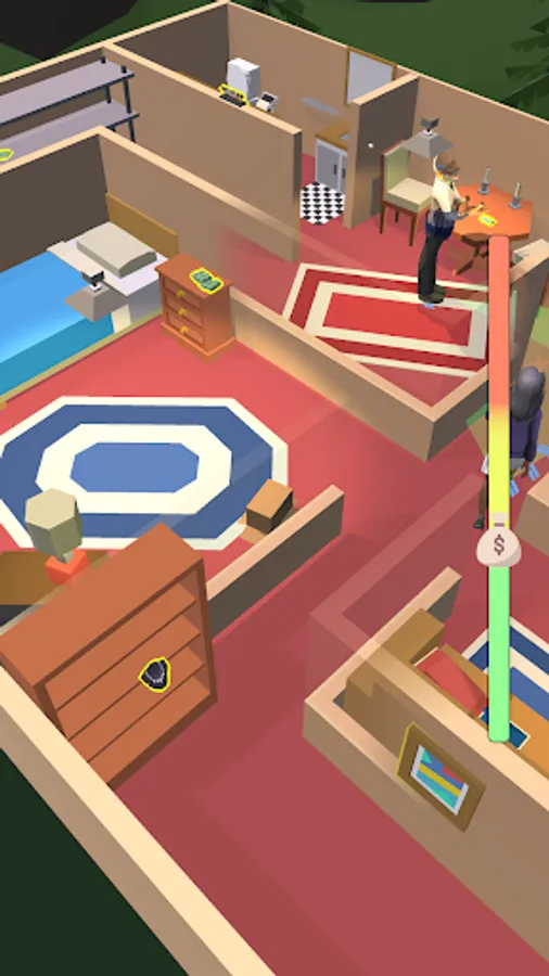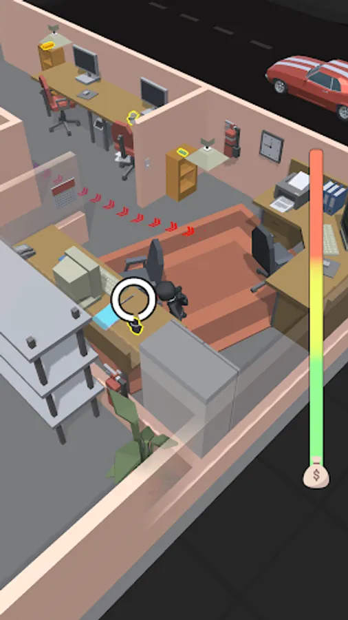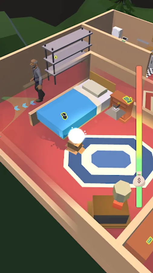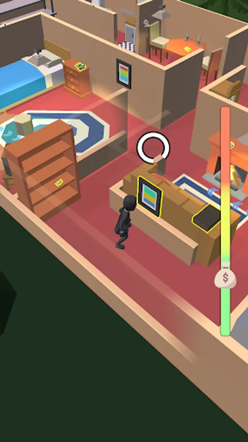 Steal valuables from houses and try to do it so that you are not noticed. You can equip your base with stolen valuables or sell them for money and use the proceeds to upgrade the thief's skills!