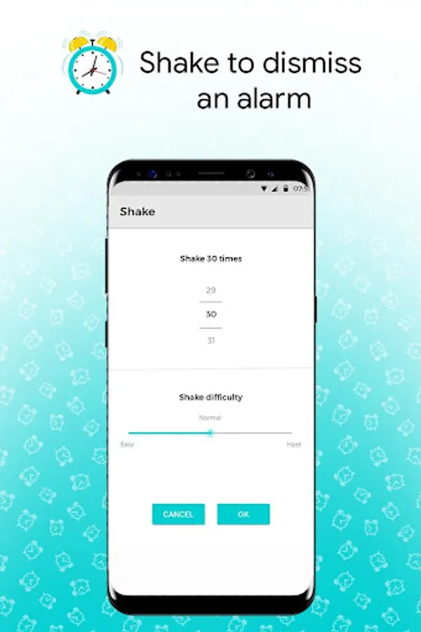 - Shake Challenge : Turn off alarm clock, shake your phone up to 500 times