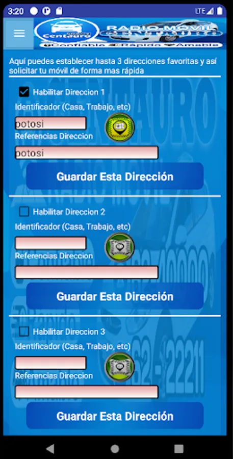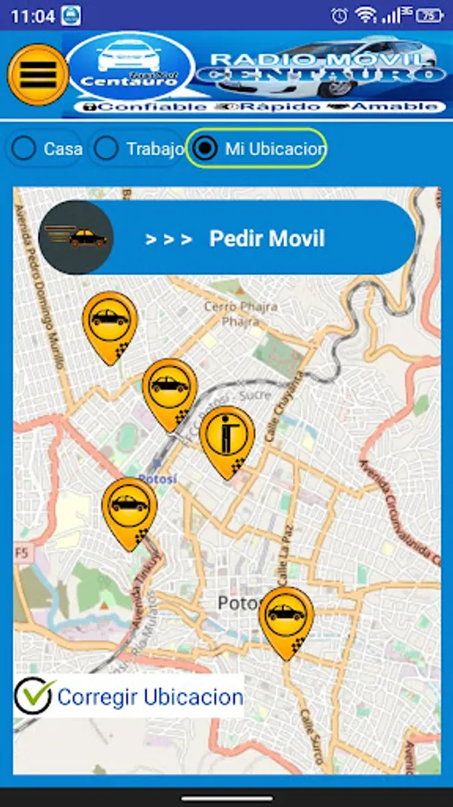* Substantial economic savings in the cost of communicating with our company through a cell phone. A call will cost at least 0.50 ctvs of Boliviano and a race requested from our App will cost you maximum 0.05 ctvs of Boliviano (10 times less).
