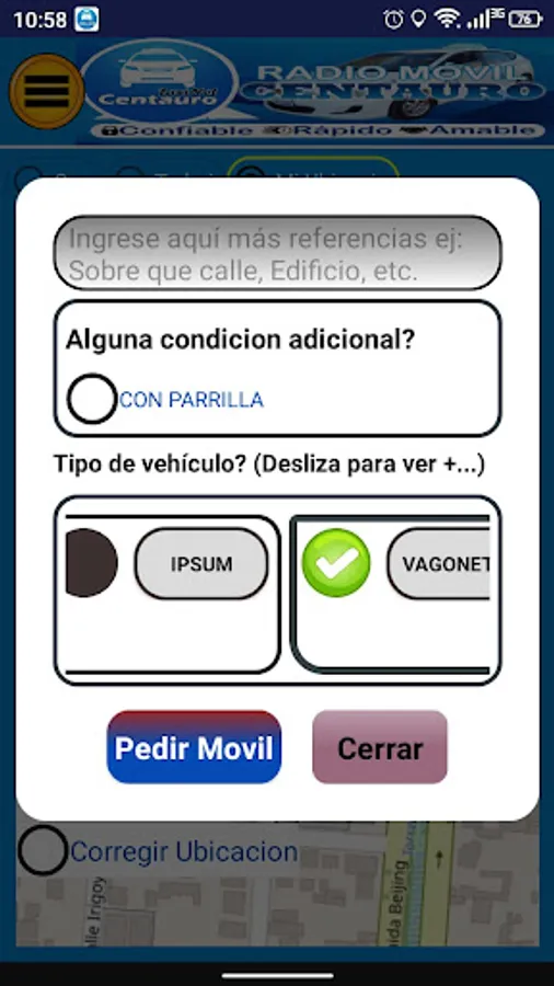 * Real-time display of the distance and location of the vehicle that will attend your request, on your cell phone.