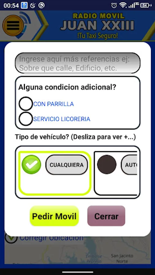 * Real-time display of the distance and location of the vehicle that will attend your request, on your cell phone.