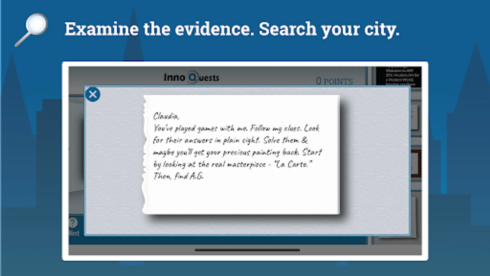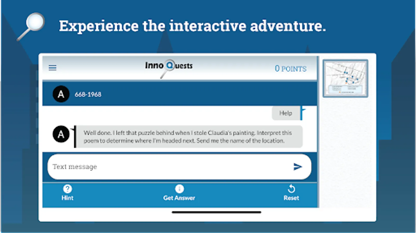 Get ready to explore more! InnoQuests are interactive adventures that guide players through real-world locations using videos, case files, and items in inventory. Solve a crime, get involved with a mystery, or track down a culprit. Puzzles/clues presented along the way can only be solved through real-world exploration!