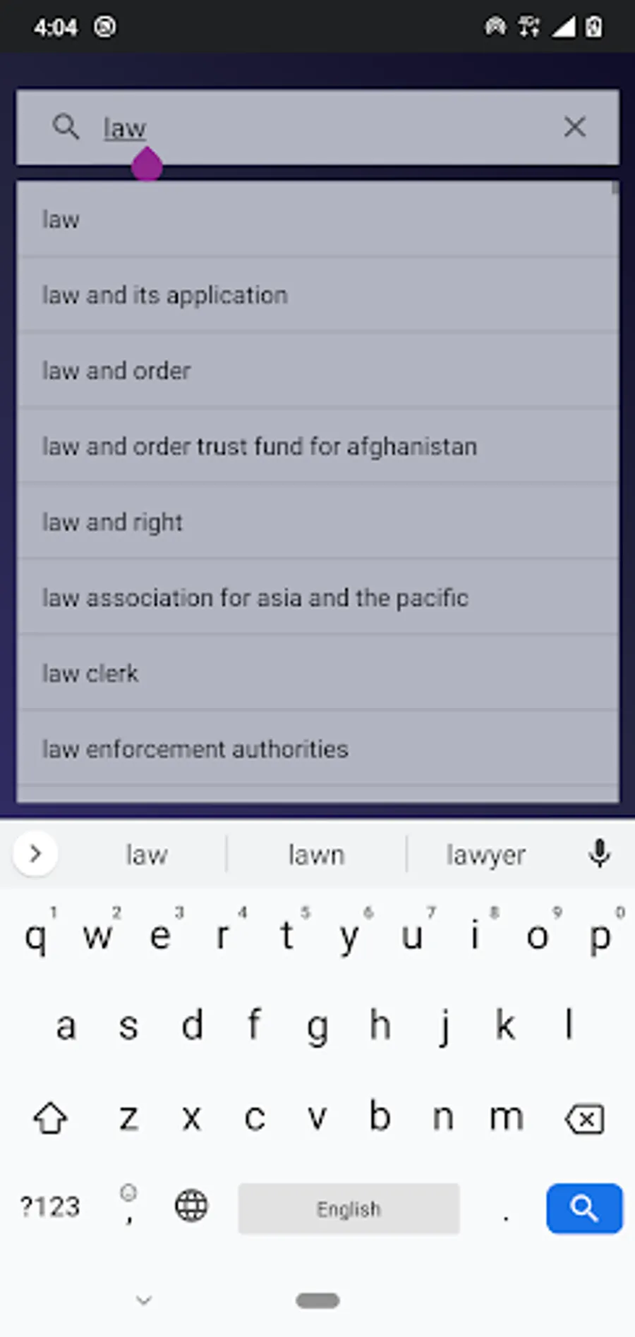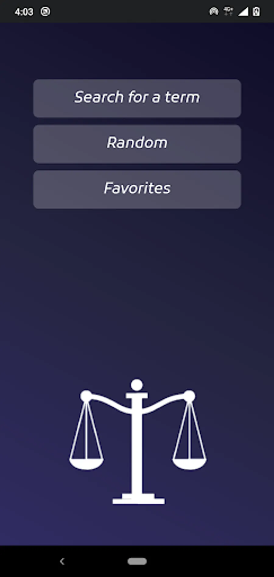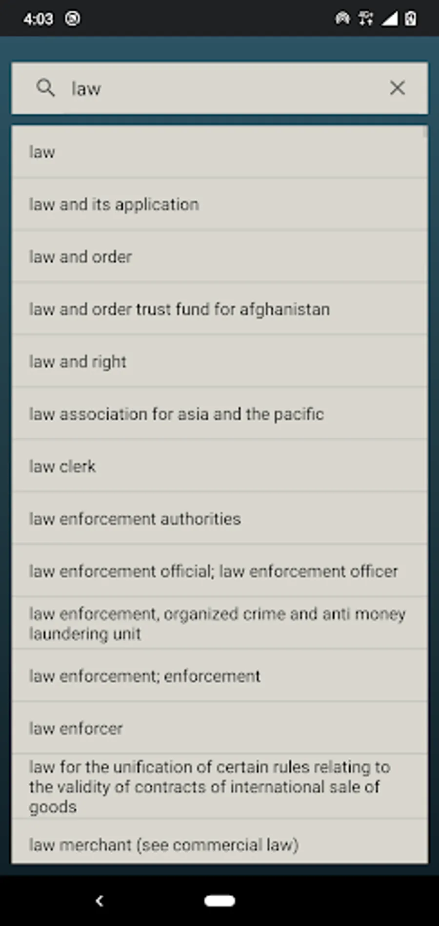 القاموس القانوني هو تطبيق يحتوي على الكلمات والمصطلحات القانونية العربية والعالمية بالاضافة الى المصطلحات العسكرية والمصطلحات الخاصة بالأمم المتحدة مضاف اليها ايضاً قاموس مختصر عام من مفردات اللغة, القاموس القانوني يعمل باللغتين انجليزي عربي / عربي انجليزي بمجموع يساوي اكثر من ۹۸٠٠٠ كلمة و مصطلح ,