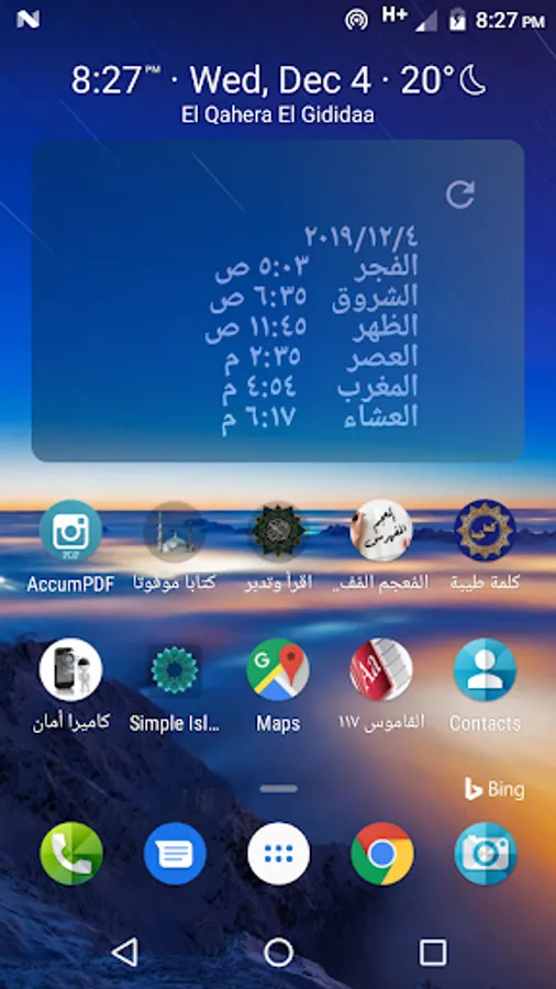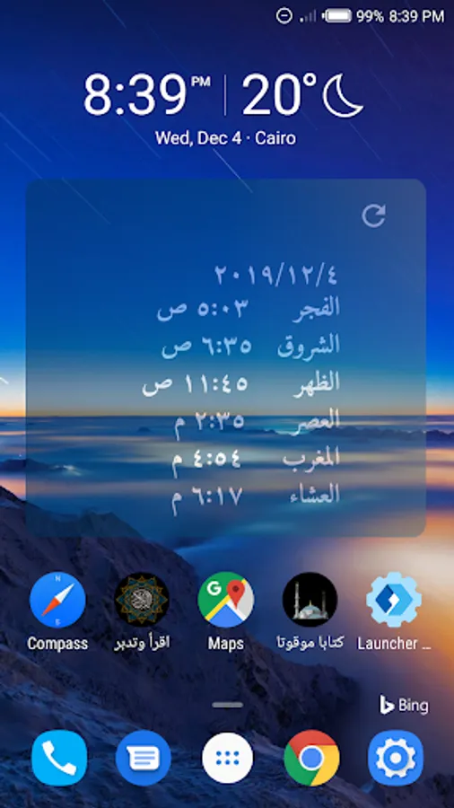 The application is just a result of prayer times. You can put it on your phone’s home screen to be visible all the time, or you can know the prayer times from within the application itself, as shown in the pictures, and if your phone is equipped with a compass, you can know the direction of the qiblah accurately, and please read the instructions for using the compass inside the application before use, The application does not contain a reminder, azan, or a remembrance, and there are other programs that contain it.