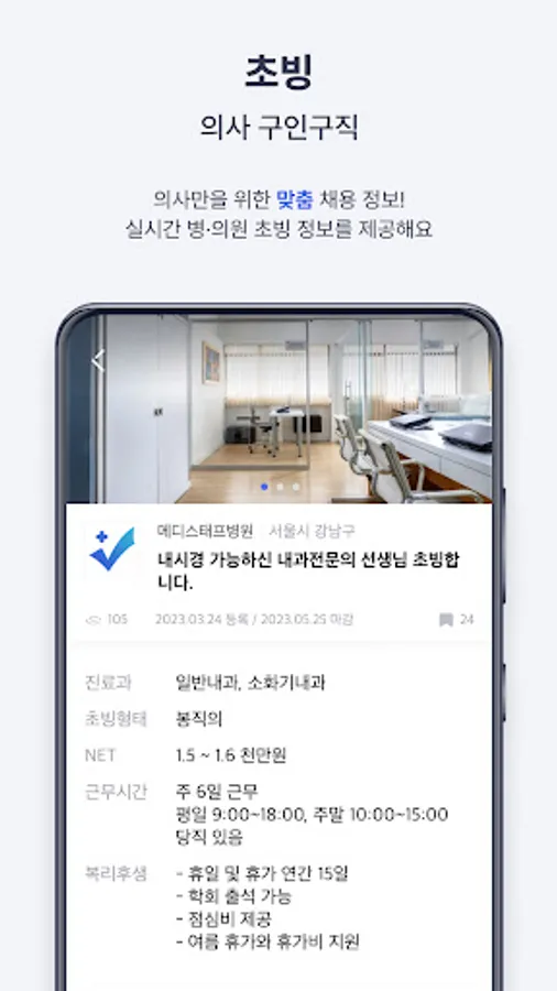 Medistaff is a 'mobile platform dedicated to doctors/medical students' and is a community of young doctors whose main focus is young doctors in their 30s and 40s who are actively seeking jobs.