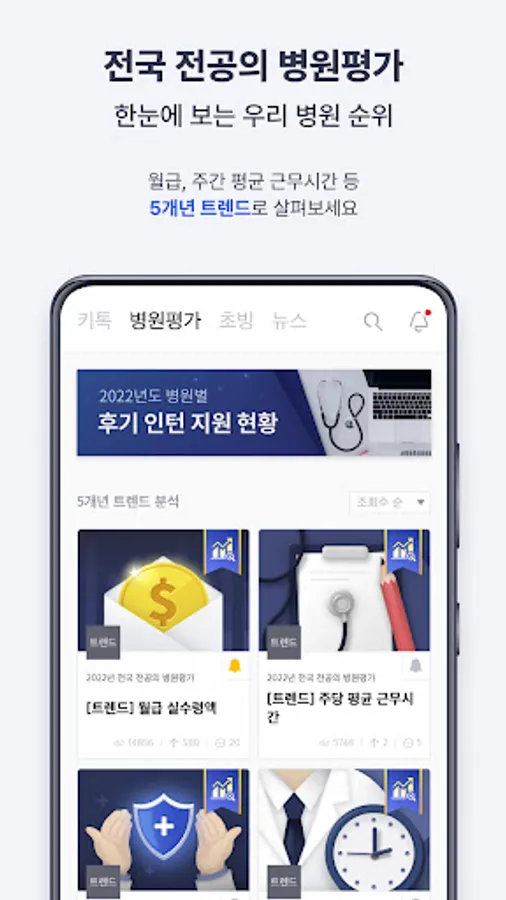 Every year, the Korean Residents Association announces the results of the 'National Major Hospital Evaluation' to improve the training environment for residents, discloses the real-time application rate for interns, and opens the 'job search-invitation' service, providing various services for doctors and medical students. The community is growing rapidly.