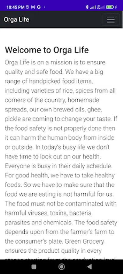 Orga Life is on a mission is to ensure quality and safe food. We have a big range of handpicked food items, including varieties of rice, spices from all corners of the country, homemade spreads, our own brewed oils, ghee, pickle are coming to change your taste. If the food safety is not properly done then it can harm the human body from inside or outside. In today’s busy life we don’t have time to look out on our health. Everyone is busy in their daily schedule. For good health, we have to take healthy foods. So we have to make sure that the food we are eating is not harmful for us. The food must not be contaminated with harmful viruses, toxins, bacteria, parasites and chemicals. The food safety depends upon from the farmer’s farm to the consumer’s plate. Green Grocery ensures the product quality in every stages starting from the production level to the final packaging.