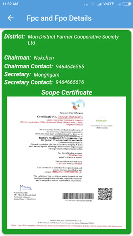 An application providing details of Farmer Producer Company/Farmer Producer Organisations related to their Organic produce in various districts of the state of Nagaland.