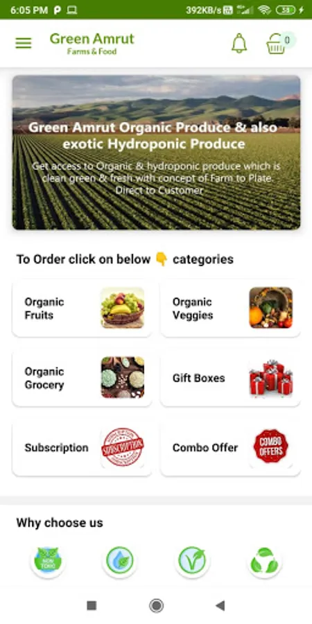 Green Amrut is Direct from farm to Plate concept with Pure Organic Veggies, Frutis & Groceries. Our farms are within few hours reach to where your home is, creating a complete transparent supply chain with low-carbon footprint.