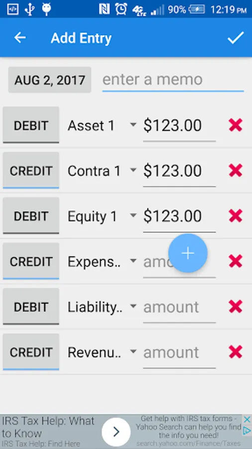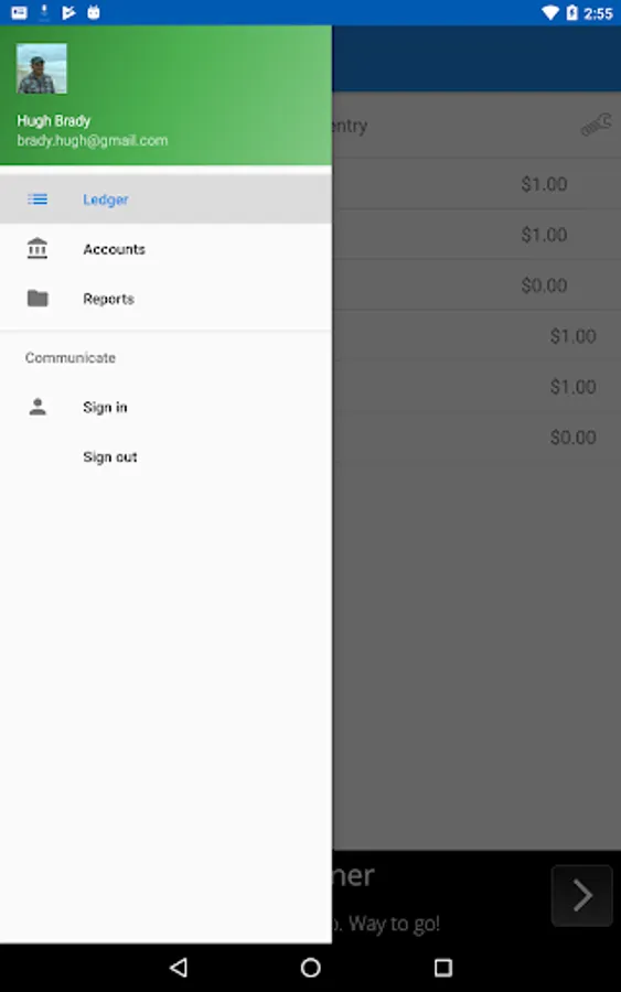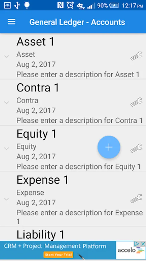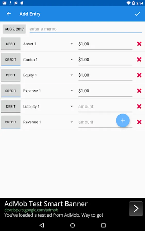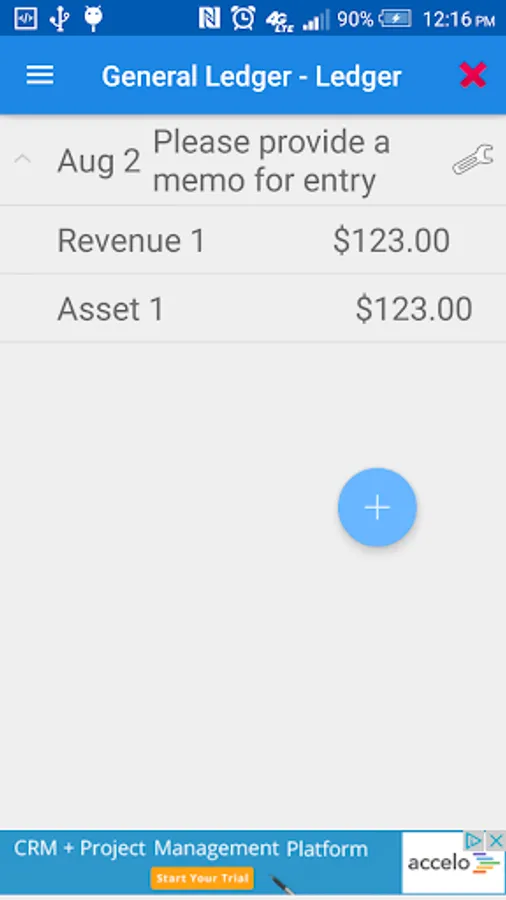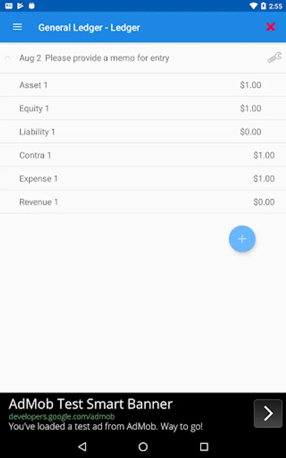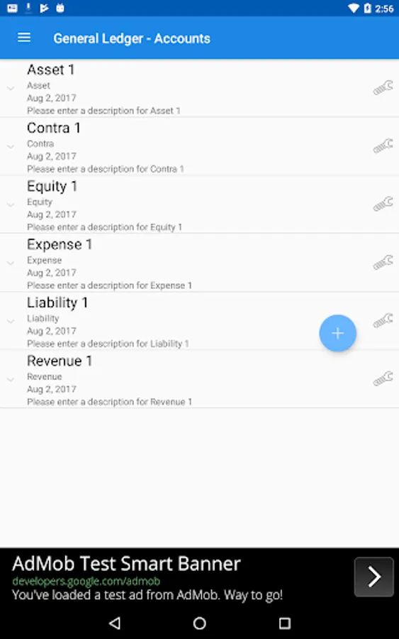This is an app for general ledger accounting entry. The app supports creating ledger accounts and creating double-sided entries. You can export to standard comma separated value (.csv) file format. Share exported files from within the app or copy them directly from external storage when the device is connected to your computer.