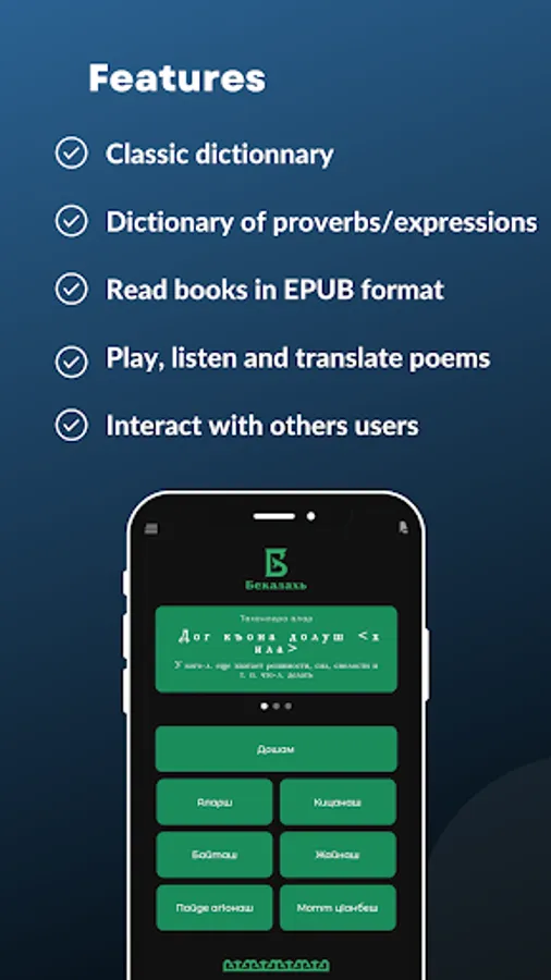 Bekalakh is a comprehensive and user-friendly mobile application that helps Chechen speakers improve their language skills. With a classic dictionary, a dictionary of expressions and proverbs, and a collection of poems, this app is an invaluable resource for anyone who wants to improve their understanding of the Chechen language.