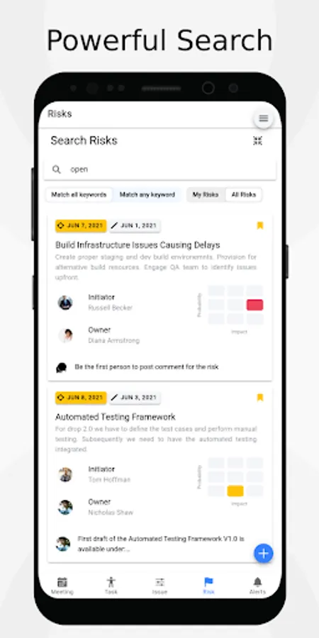 The application is built with fast search and management dashboard and KPIs. The entire team can collaborate on any items, get notified on open items.