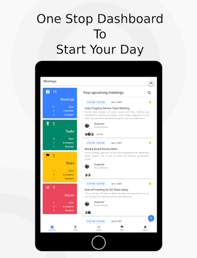 1. Setup your meetings easily and in advance with prefilled agenda and notes so that all stakeholders come prepared for the meeting.