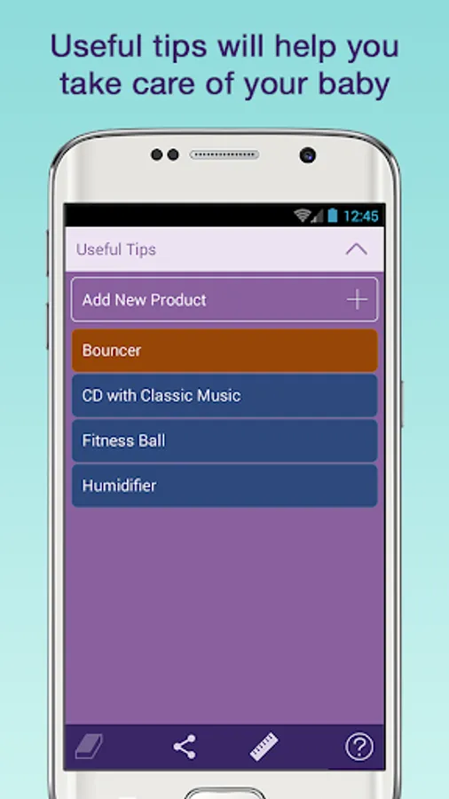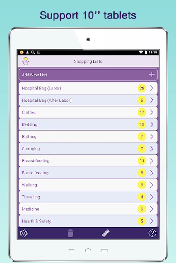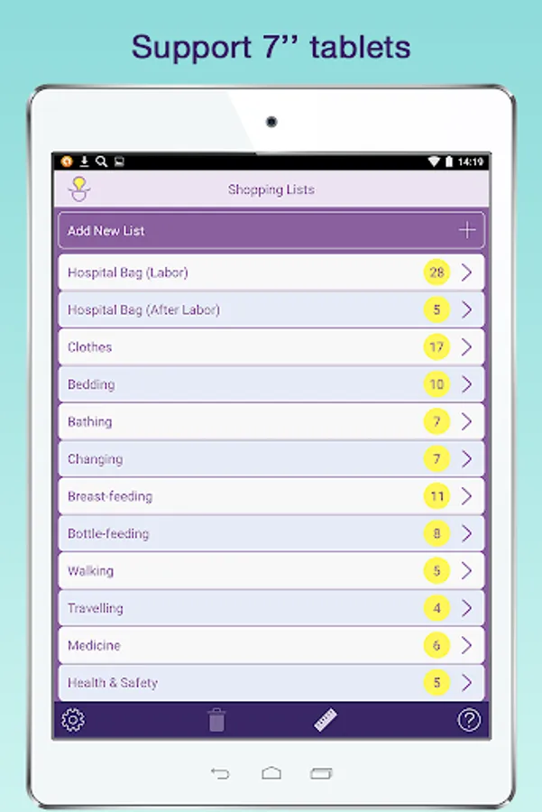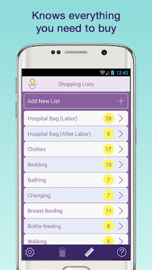 With the Newborn application, you'll have a complete and time-tested list of all the necessary things you need to buy before your baby is born!