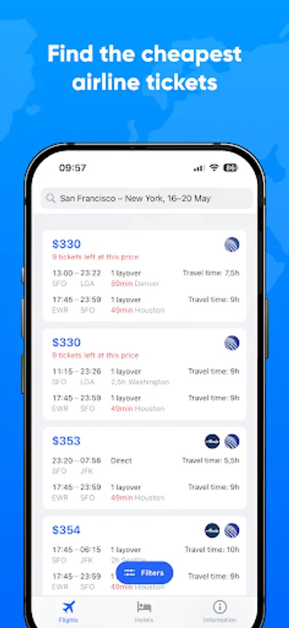 Fast and User Friendly: Our app quickly scans all popular flight sites and gives you the best options. You just make your choice and leave the rest to us.