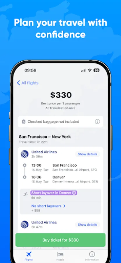 Flight Ticket: USA is an indispensable assistant for travelers who want to book flights and find comfortable accommodation in the United States. Our app offers a range of great features to make your travel experience more affordable and enjoyable.