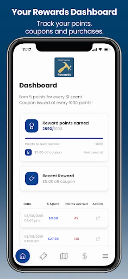 "My Hardware Rewards gives you a personal dashboard to manage your profile, view receipts, track points, access coupons & more. Register through any participating dealer, then download the app, sign in, and start saving!