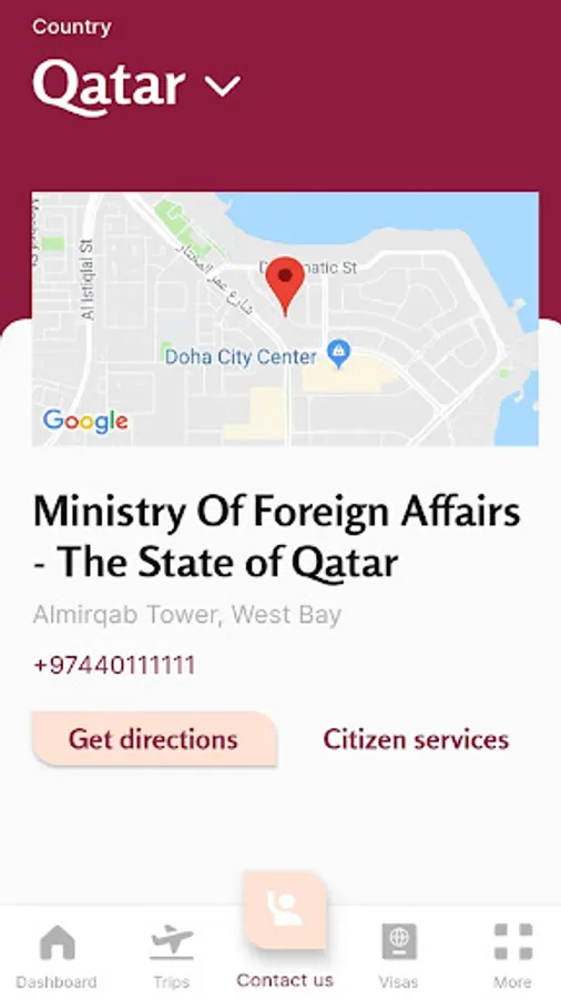 This application has been developed to provide easy access to information and services provided by the Ministry of Foreign Affairs (MOFA), Qatar, including: Contact information of Qatar's missions abroad, and Accredited missions in Qatar, Visa requirement information, Toll free and Travel Pre-registration services as well as request assistance.