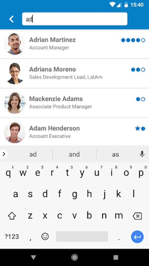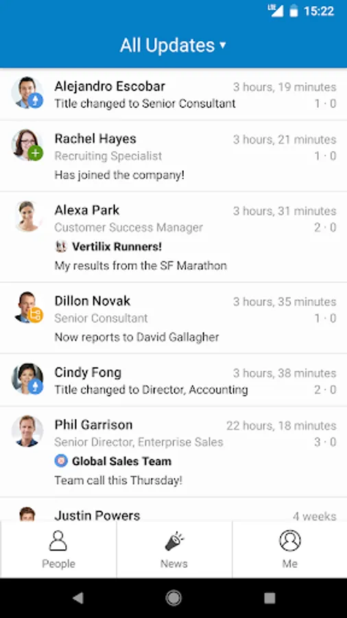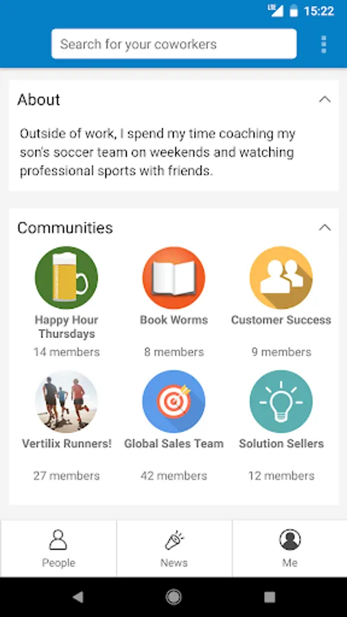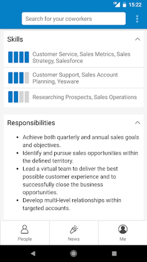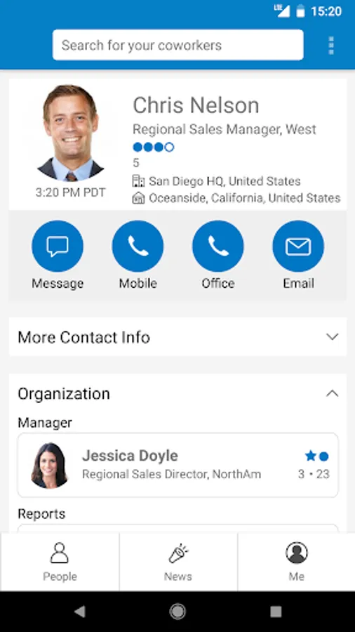 - Find coworkers and quickly reach them by phone, SMS, email, and chat.