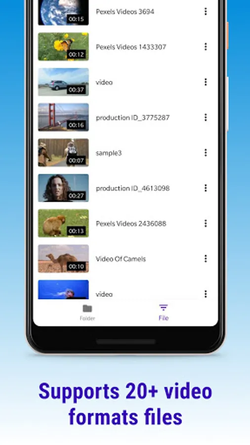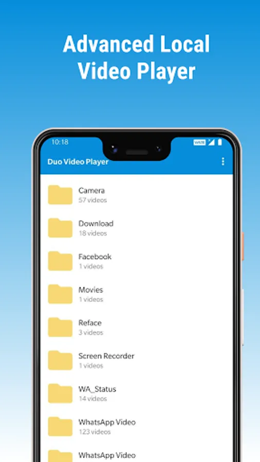 ✔️ Duo Video Player will identify ALL video files on your device and SD Card automatically.