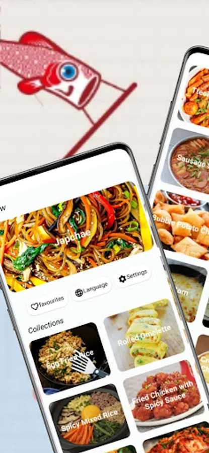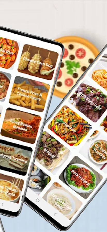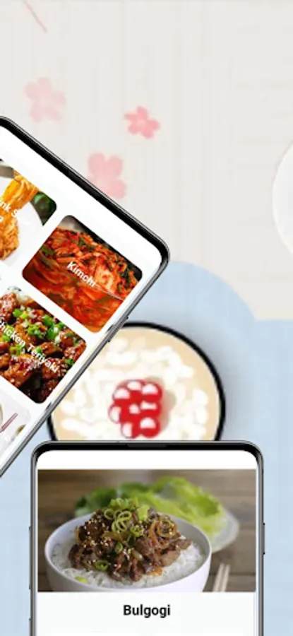kimchi, Korean salad, Spicy mixed rice, Chicken teriyaki, Mochi, and Pork bulgogi. Enjoy the best tasty recipes from Korea with our recipe app.