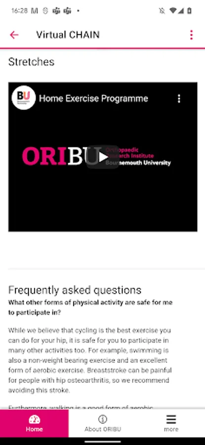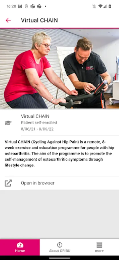 - Virtual CHAIN (Cycling against Hip Pain) – An online exercise and education intervention for people with hip arthritis.