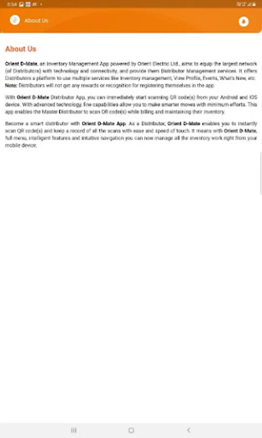 Become a smart distributor with Orient D-Mate App. As a Distributor, Orient D-Mate enables you to instantly scan QR code(s) and keep a record of all the scans with ease and speed of touch. It means with Orient D-Mate, full menu, intelligent features and intuitive navigation you can now manage all the inventory work right from your mobile device.