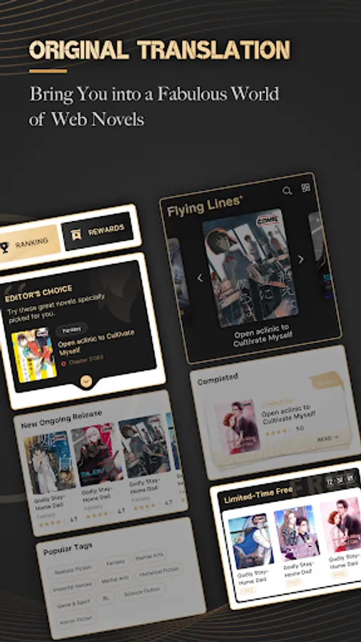Function toolbar makes it easy to choose novel chapters to read. Through tags like yaoi, rebirth, boys' love, yoai, manga book, yaoi BL, ABO, comedy, doujinshi, BL webnovel and light novel, you may choose any webnovel & yioa manga, romance novel or hot bl to read. Offline reading offers good webfic like boyxboy and pure romance. Flying Lines+ is really a friendly pocket webnovel and free book apps with quick novel updates just like on ao3, dreame, novelcat, novelfull, lezhin and bravonovel.