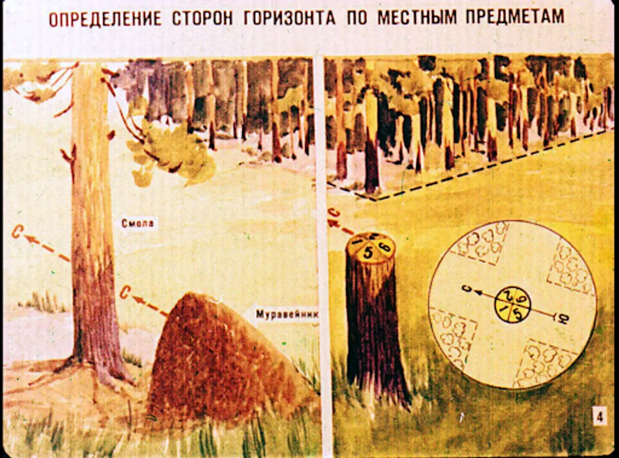 You can navigate by the Sun, by the stars, by local signs, by objects of nature. First, the north direction is determined.