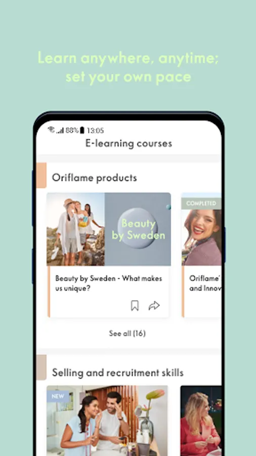 • Easily find the right course for you: product knowledge, selling and business building