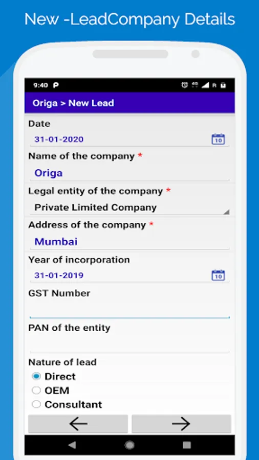 This application is meant for Origa Leasing Finance Pvt Ltd, This will help to capture the New Leads.