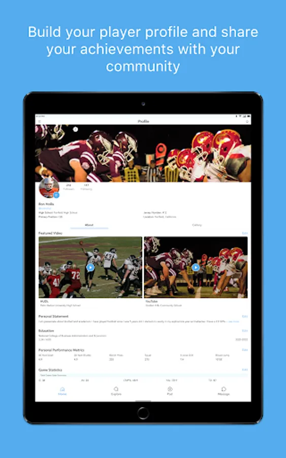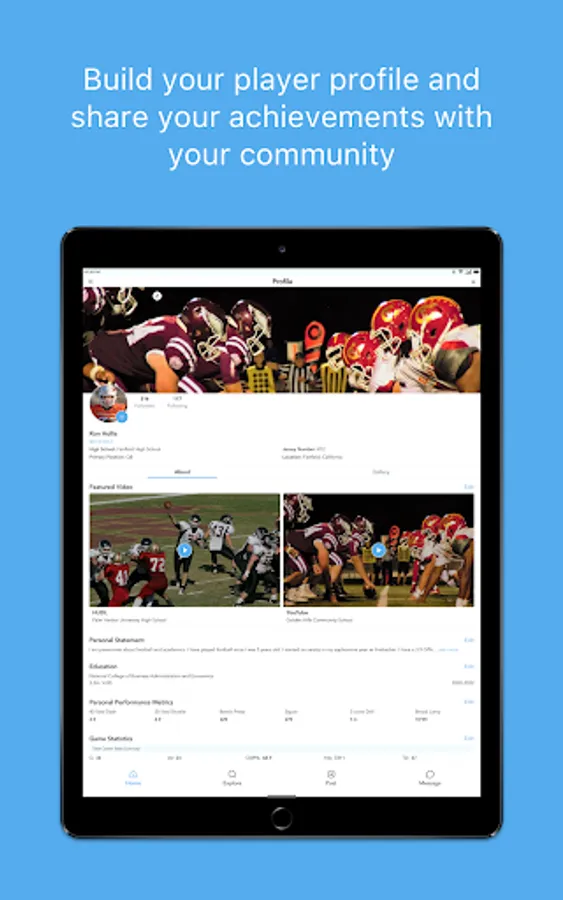 Fanbladz is an online service that allows high student athletes (SA) the ability to build resumes and player performance profiles (PPP) of their academic and sports performance history in a centralized web-based location for sharing with family and fans and being discovered by college recruiters with advanced analytical search and discover capabilities