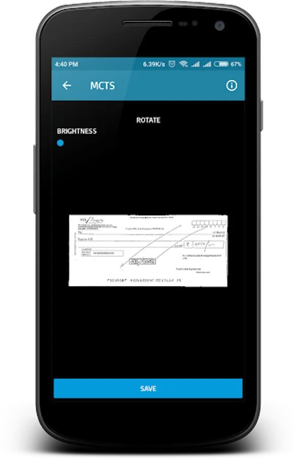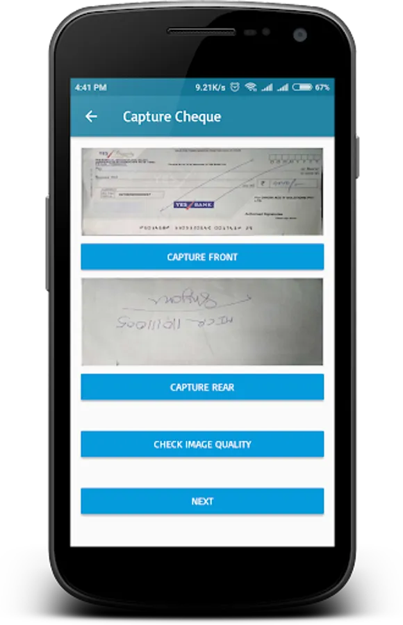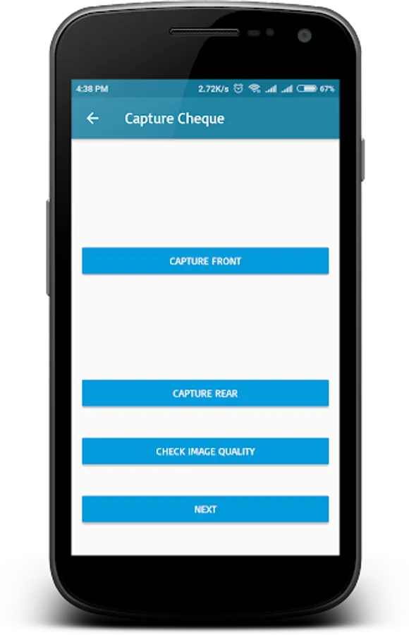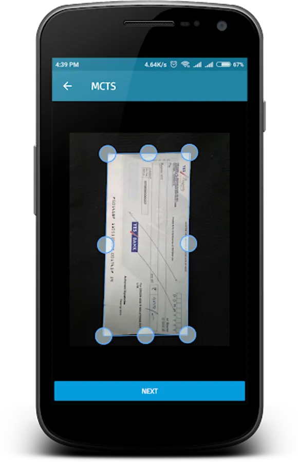 This application covers the facility to replace cheque scanners with mobile application based camera. This application would help banks to bring smaller volume branches under the umbrella of automation of cheque movement from one bank to another.