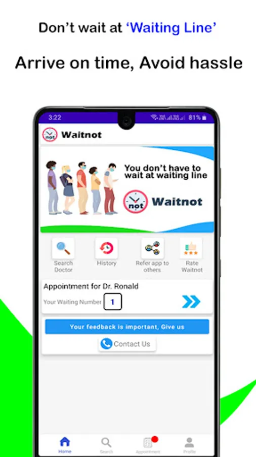 Waitnot is an android application which provide software as service. Waitnot helps you to make doctor appointment from home and see waiting line as your own convenience. Now do not waste your time and energy by waiting doctor's chamber.