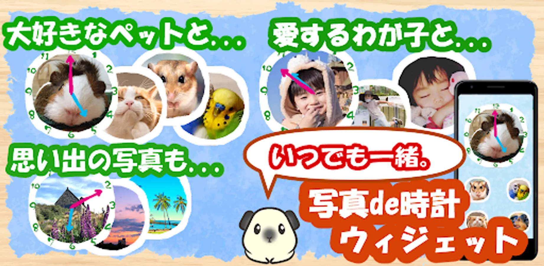 It is a widget application that turns your favorite photo into a clock and displays it on the home screen. You can also choose to display only photos. Customize your own cute and stylish home screen. Of course it's free.