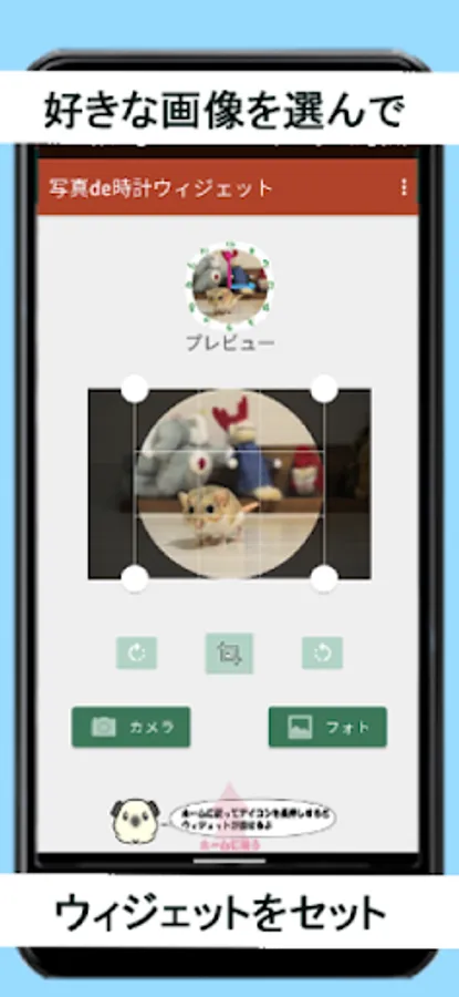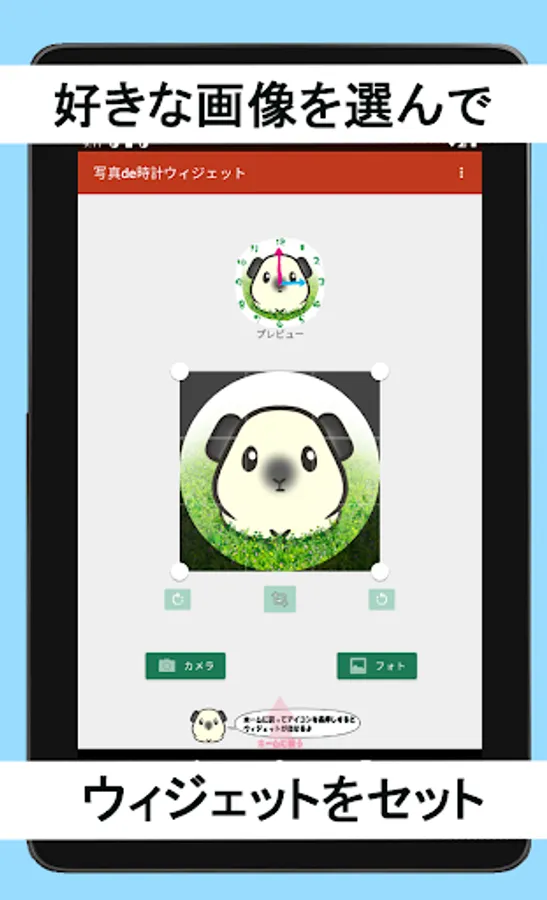 * 1 If you want to use the default guinea pig image, set it in the widget preview with the crop button on the application startup screen (if you have already set other photos, quit the application and restart it).
