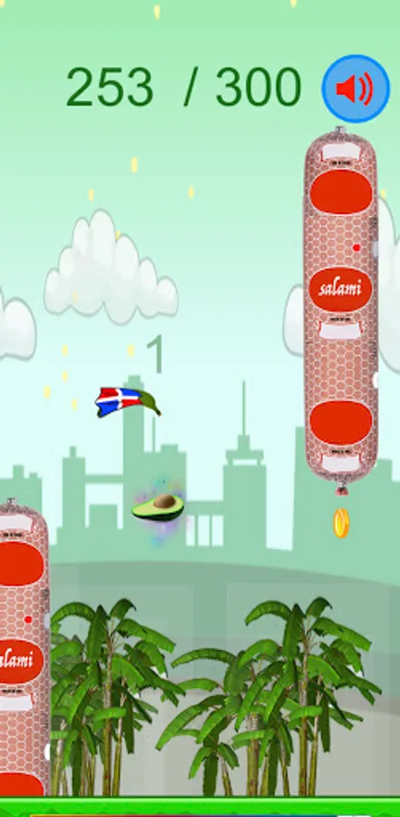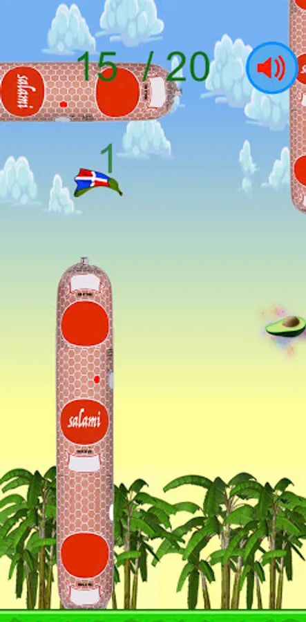 Este super contagioso juego donde la meta es de que el platano pase por el medio de los salami... aver cuantos salamis puedes pasar?