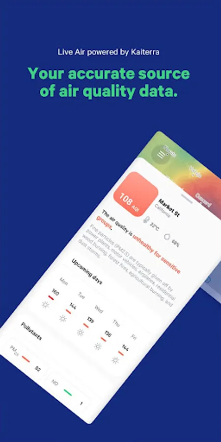Developed by Kaiterra, a leading company in air quality monitoring, Live Air presents real-time air quality information on a hyperlocal level.
