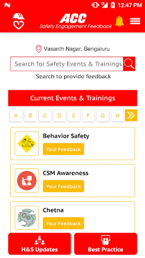 Safety engagement feedback is specially designed for corporate health and safety department of ACC, to provide online real time feedback on various training and events through customized feedback forms designed for different types of training and events. This has features of real time dashboard and analytics. This application also enables best practice sharing and campaign management from ACC through newsletters, announcements, posters.