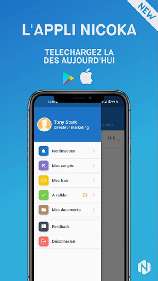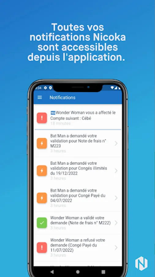 The Nicoka application complements the web application by allowing you to enter your expense reports directly on your phone, with or without internet.