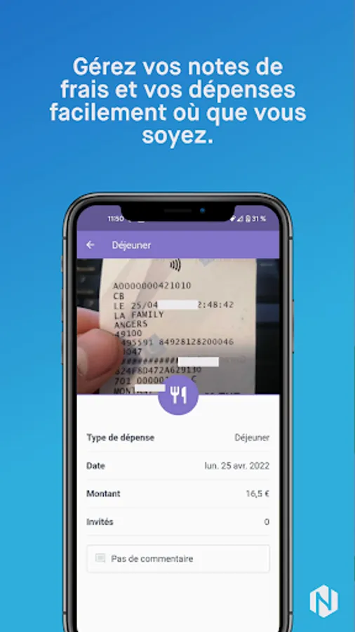- Take a photo of your receipts and attach them immediately to your pre-filled expenses.