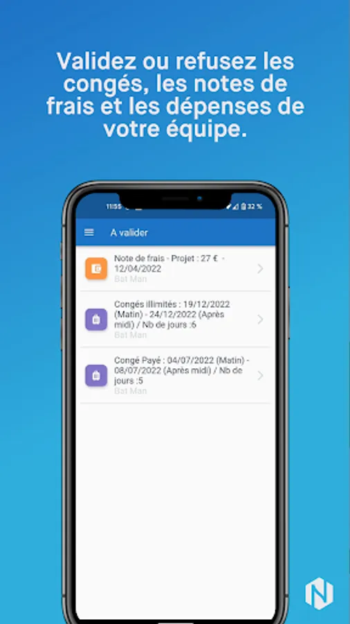 - Accept or refuse leave and expense report requests.