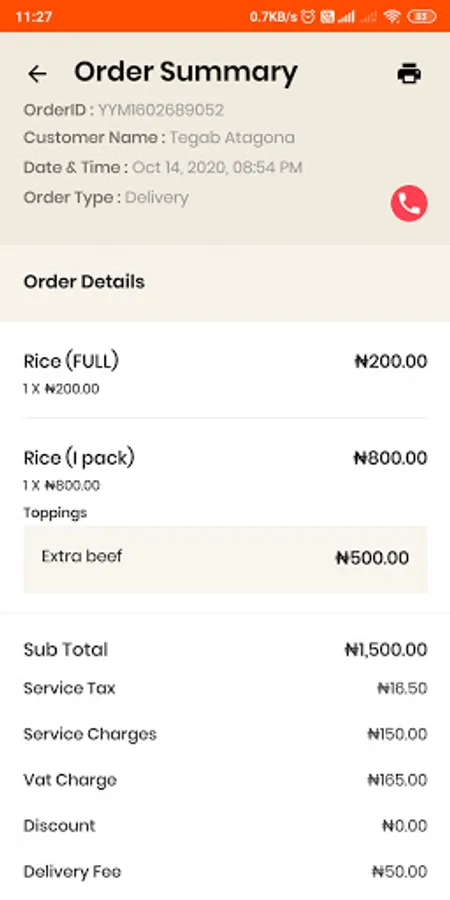 2. Receive food order