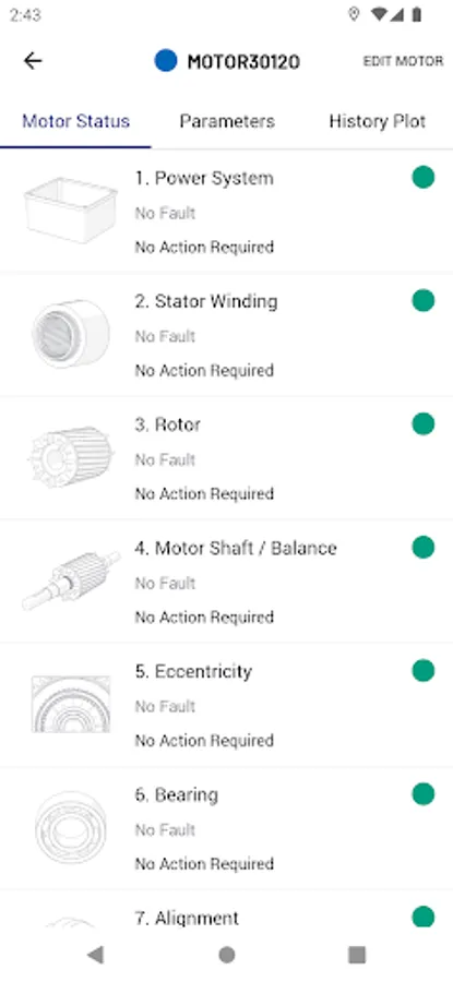 • Verificar los parámetros medidos por el SMS y la condición de sus motores eléctricos.