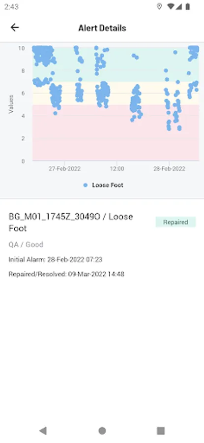 • Ver diagramas y gráficos capturados por el SMS, Incluyendo Vibración, Campo Magnético, Velocidad del motor, Temperatura del motor, Estado de salud de los componentes del motor y mucho más.