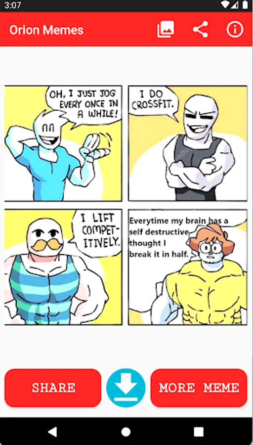 With Orion Memes you can create the funniest memes and share them with your friends through your favorite apps.