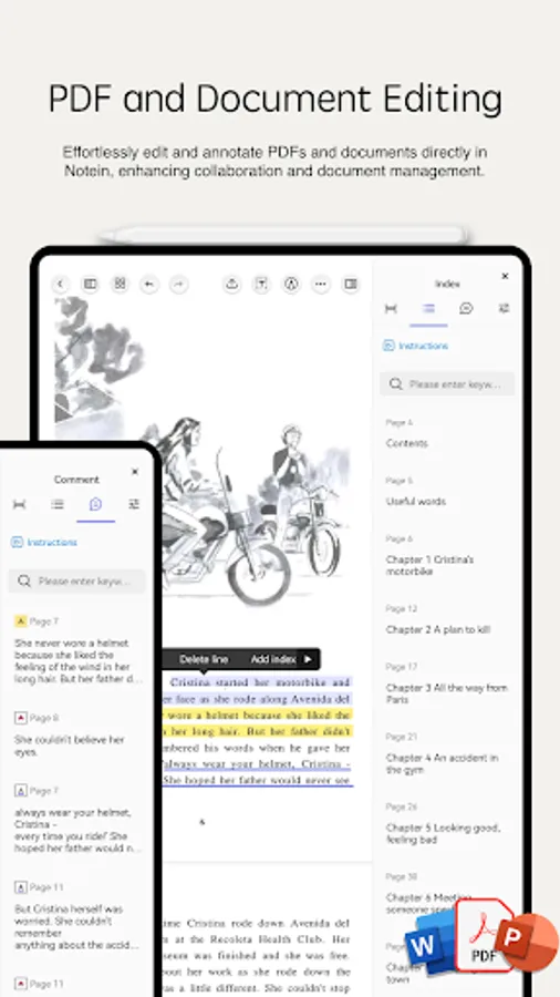 Transform your device into a versatile PDF reader with highlighting, annotation, and even word lookup. Edit outlines and add comments to your PDFs. Split or merge PDFs effortlessly, and automatically generate editable PDFs from your notes.